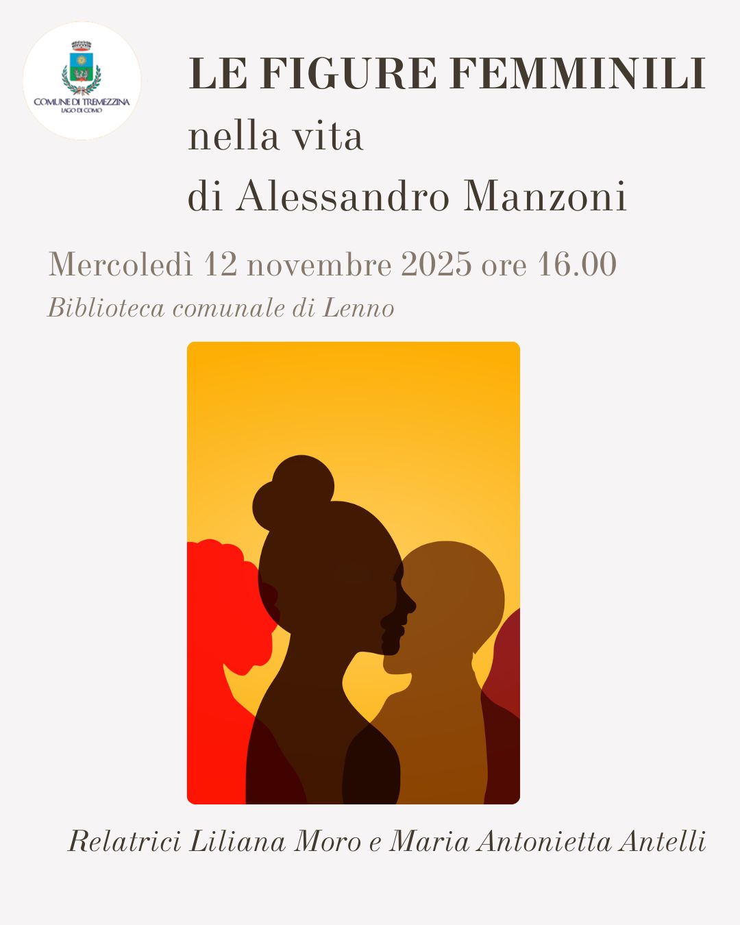 La biblioteca comunale "V. Antonini" organizza un incontro culturale dedicato alle figure femminili nella vita di Alessandro Manzoni.