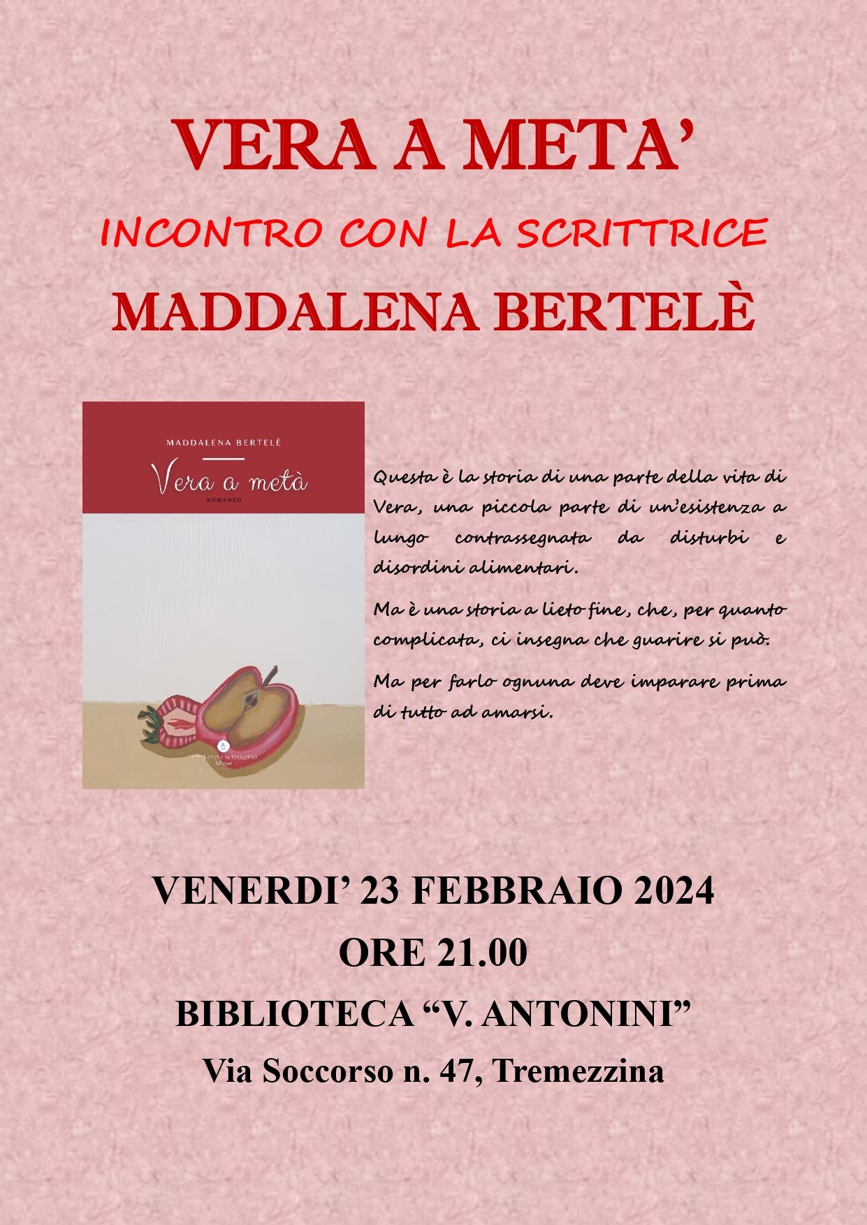 Incontro con la scrittrice Maddalena Bertelè, che presenterà il volume "Vera a metà".