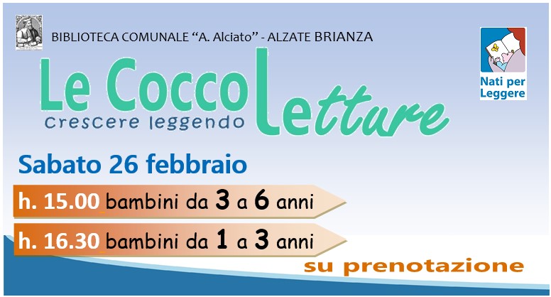 Letture per bambini con le volontarie NpL, ore 15.00 3-6 anni, ore 16.30 1-3 anni. Prenotatevi inviando una mail a biblio@comune.alzate-brianza.co.it. Vi aspettiamo!