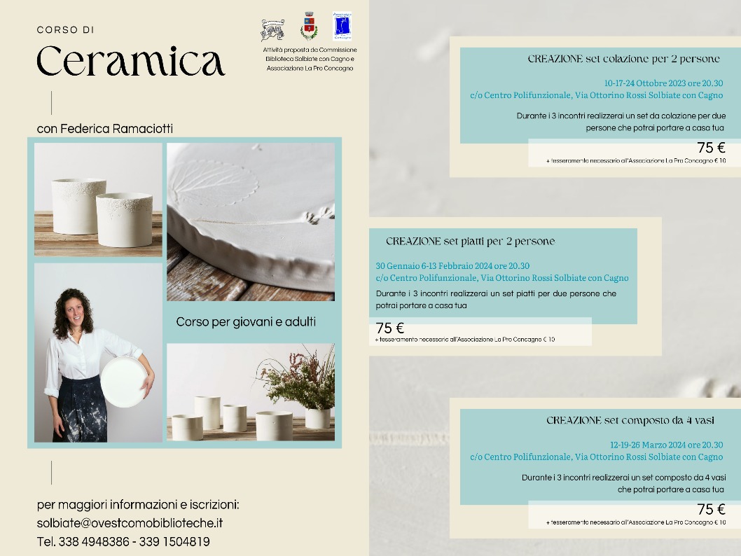 Proponiamo un corso di ceramica. Tre moduli indipendenti per imparare a creare oggetti.