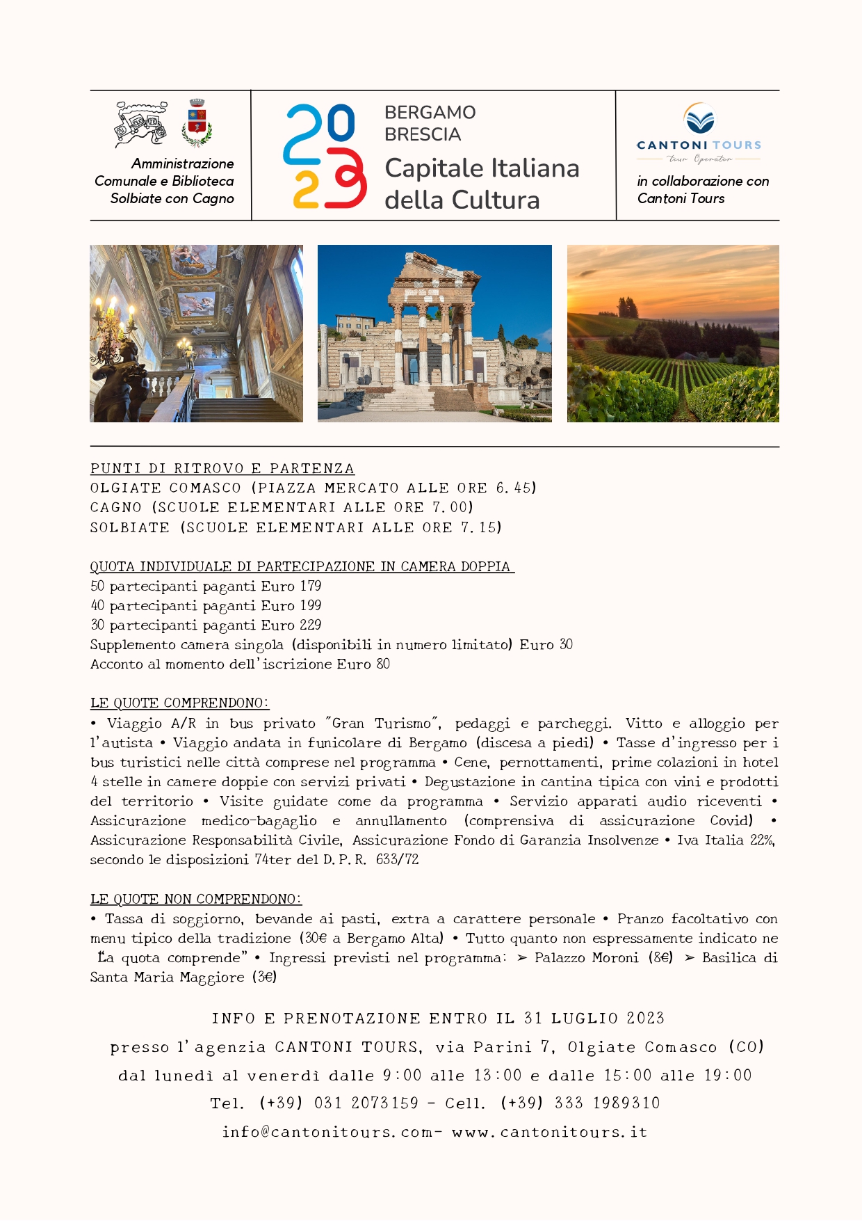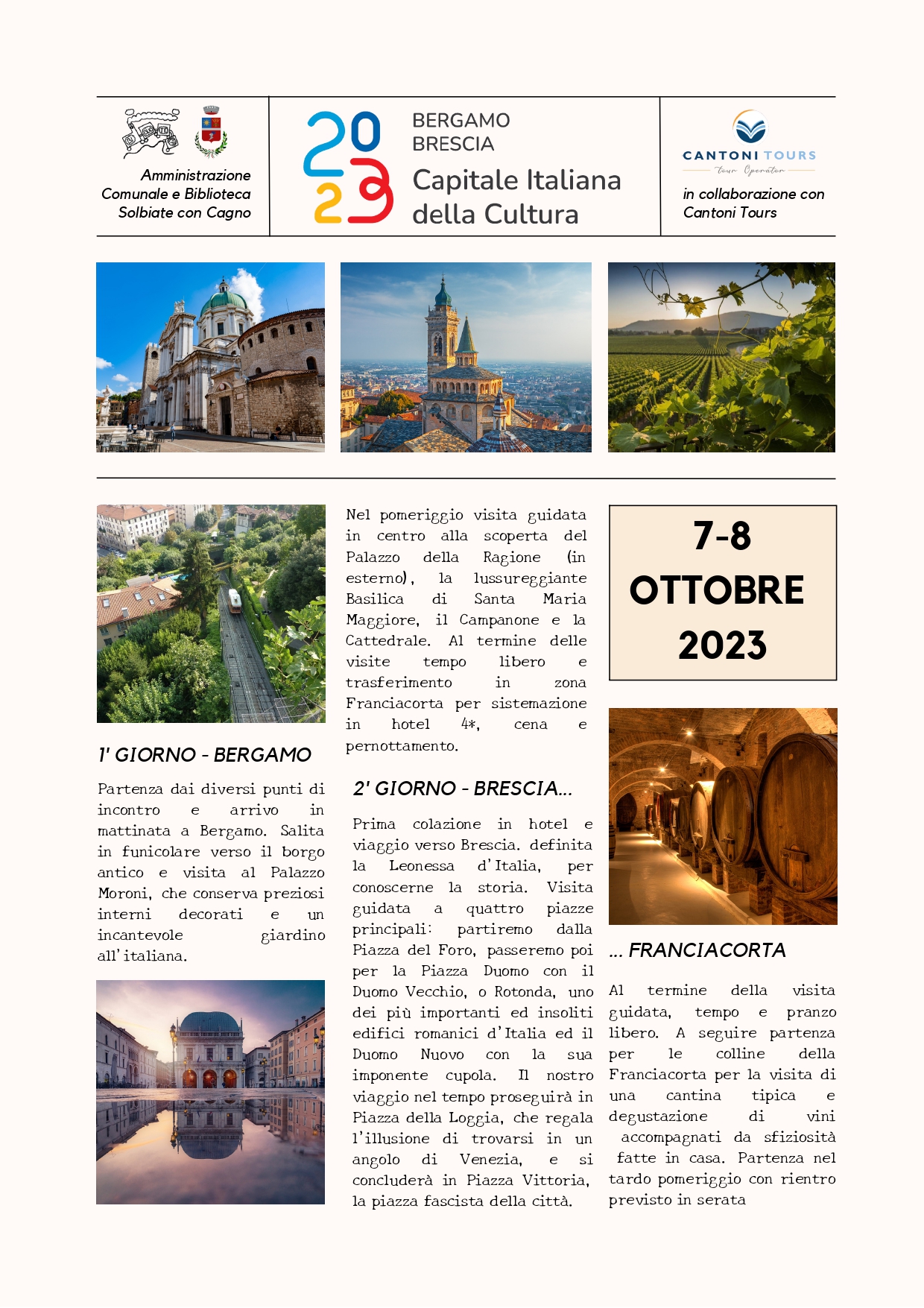 Due giorni alla scoperta di Bergamo e Brescia. Programma dettagliato in allegato.