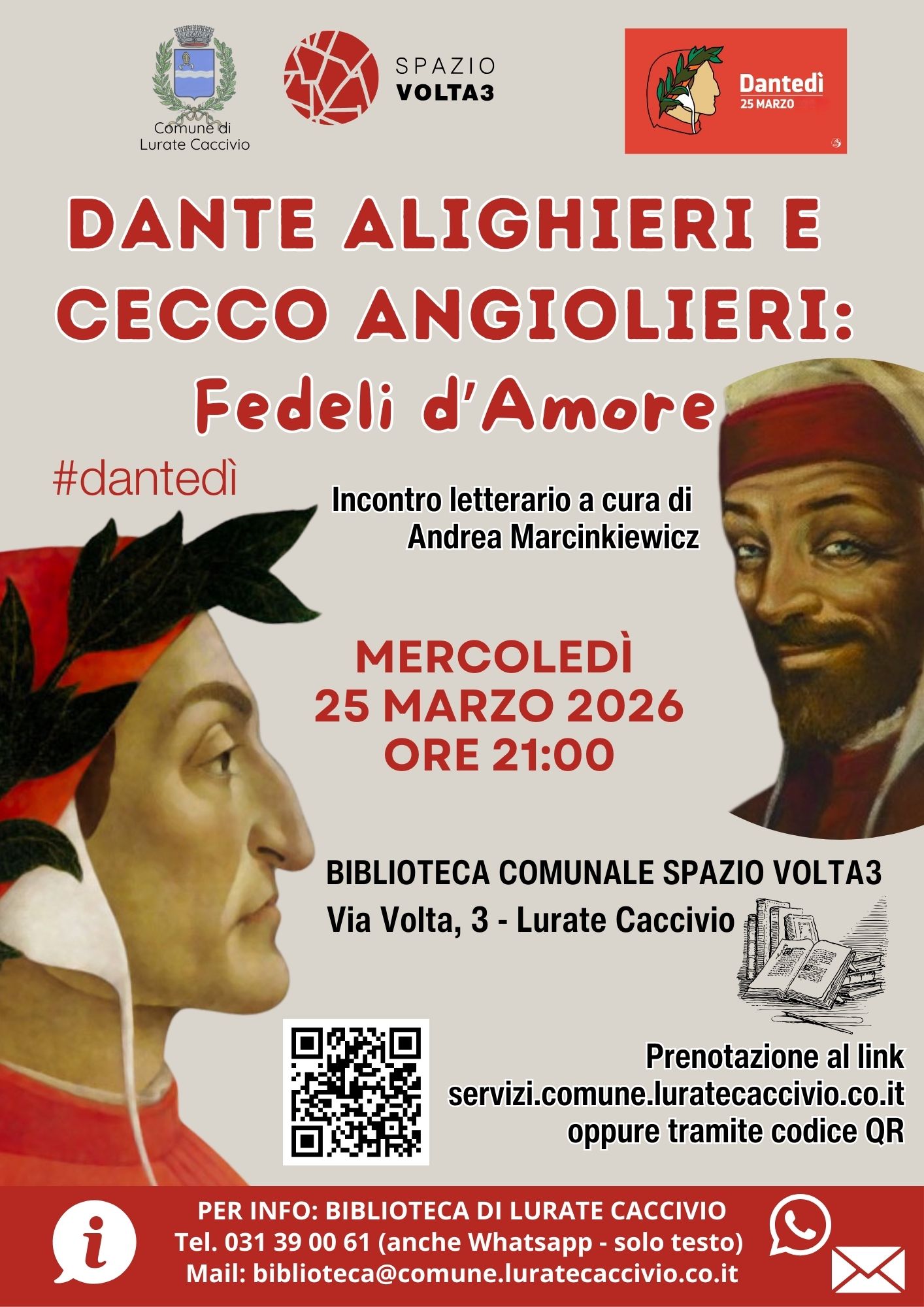 Vi proponiamo l'incontro letterario "Dante Alighieri e Cecco Angiolieri: Fedeli d'Amore" a cura di Andrea Marcinkiewicz
