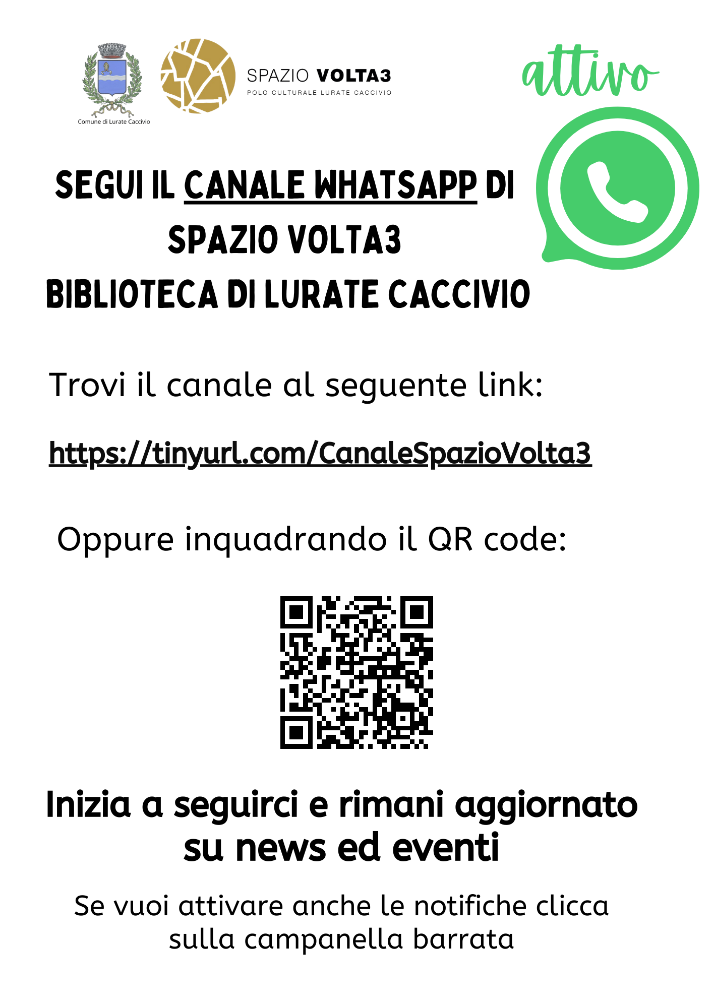 Canale WhatsApp: https://tinyurl.com/CanaleSpazioVolta3